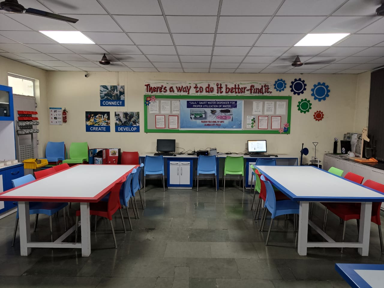 ATL, PDAV is equipped with all modern facilities and provides conducive environment where young minds can learn innovation to sculpt ideas through hands-on/ do-it-yourself activities under the mentorship of Dr. Raman Bedi, Associate Professor & Head, Mech. Dept., NIT, Jalandhar, Dr. Rahul Hans, Associate Professor, DAV University, Jalandhar and Dr. Nischay Bahl, Associate Professor and head, PG Dept. of Computer Science, DAV College, Jalandhar. There is a provision of latest technologies and tools – electronics, sensors, open source micro-controller boards, 3D printers, etc. in this laboratory to create technological innovations for applications in multiple sectors including medical, energy, health, conservation of energy & natural resources, etc. Various opportunities are available for the young students to work and learn in a flexible environment leading to their participation in multiple regional and national level science competitions and exhibitions at periodic intervals. The lab has been envisaged to be the hub for innovation, invention, creating, tinkering and giving shape to ideas, solving local and global issues using technology. The lab is inspiring the young students of our school and other community schools, to step out of their comfort zone and work on novel concepts, embrace futuristic skills as well as develop confidence and chisel their personalities.