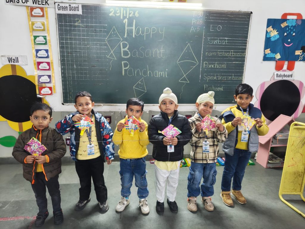 Children also learnt the Saraswati shloka “या देवी सर्वस्वरूपे विद्या रूपेण संस्तिता। नमस्तस्यै नमस्तस्यै नमस्तस्यै नमो नमः॥” by heart during Vasant Panchami celebrations. This shloka praises Goddess Saraswati as the embodiment of knowledge pervading all existence. The event was planned and supervised by Mrs. Gargi Sharma.