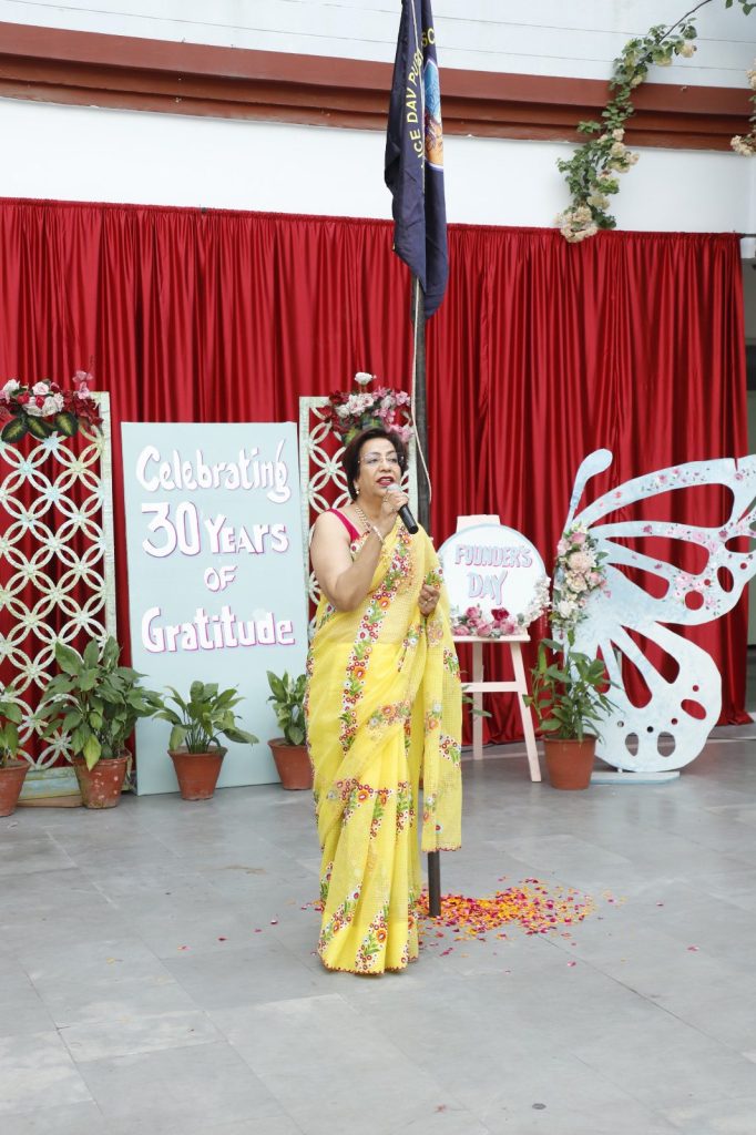 The event highlighted the journey of the school, especially the 30‑year contribution of Ma’am Principal, Dr. Rashmi Vij. A small skit was presented how Sukhmani Sahib Path is held every year in the school on this day. A song presented by the students made all delve deep into the love for the school. The flag‑hosting ceremony was conducted with dignity, reflecting the legacy and discipline that the school upholds over the years.The parade showcased the wonderful journey of the school, through costumes and banners reflecting how the school has grown from its humble beginnings to its present‑day stature. Principal Ma’am shared her words of wisdom on the remarkable achievements of the school over the past 30 years. She spoke proudly about the academic excellence, discipline, and values that define Police DAV Public School. The event was fabulously organised by Supervisor, Ms. Gargi Sharma.