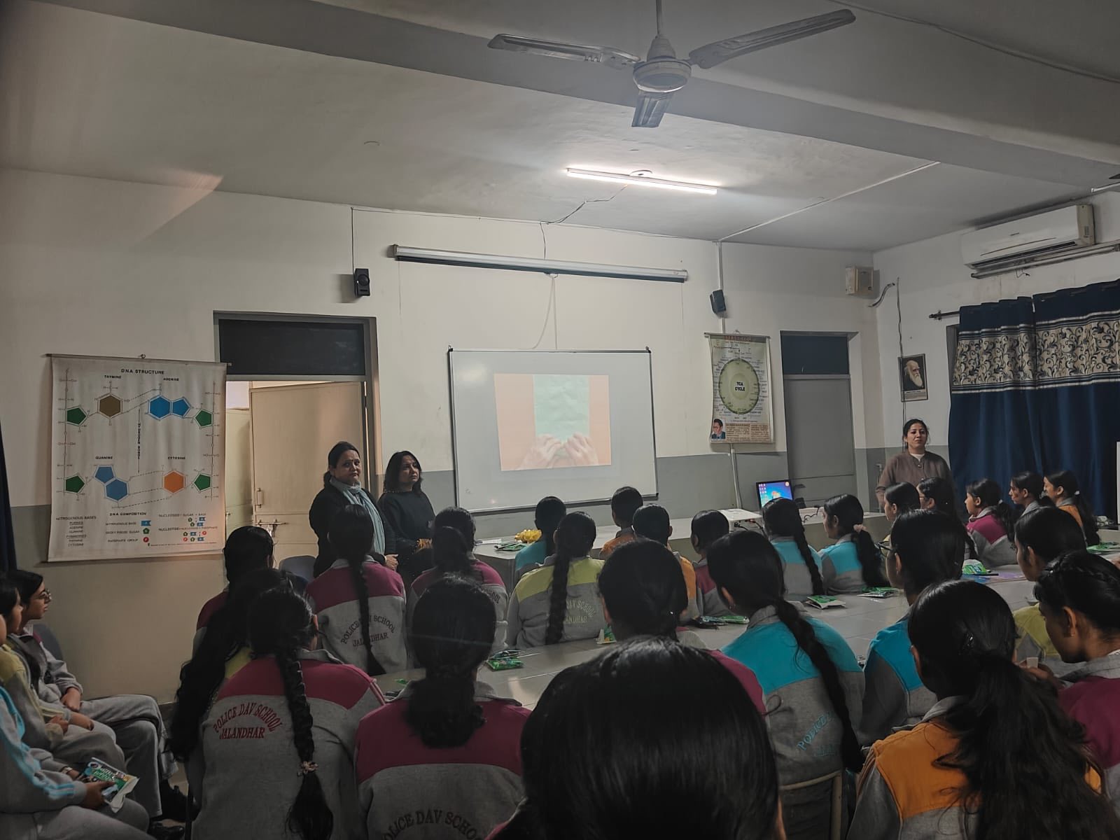 A special session on Health, Hygiene, and the Menstrual Cycle was conducted at Police DAV Public School, PAP Campus, Jalandhar Cantt for the girls of Classes VII, VIII, and IX. The session was organised under the guidance of the Principal, Dr. Rashmi Vij. It was coordinated by the Health and Wellness Club of the school as part of its ongoing initiatives to promote student well-being.